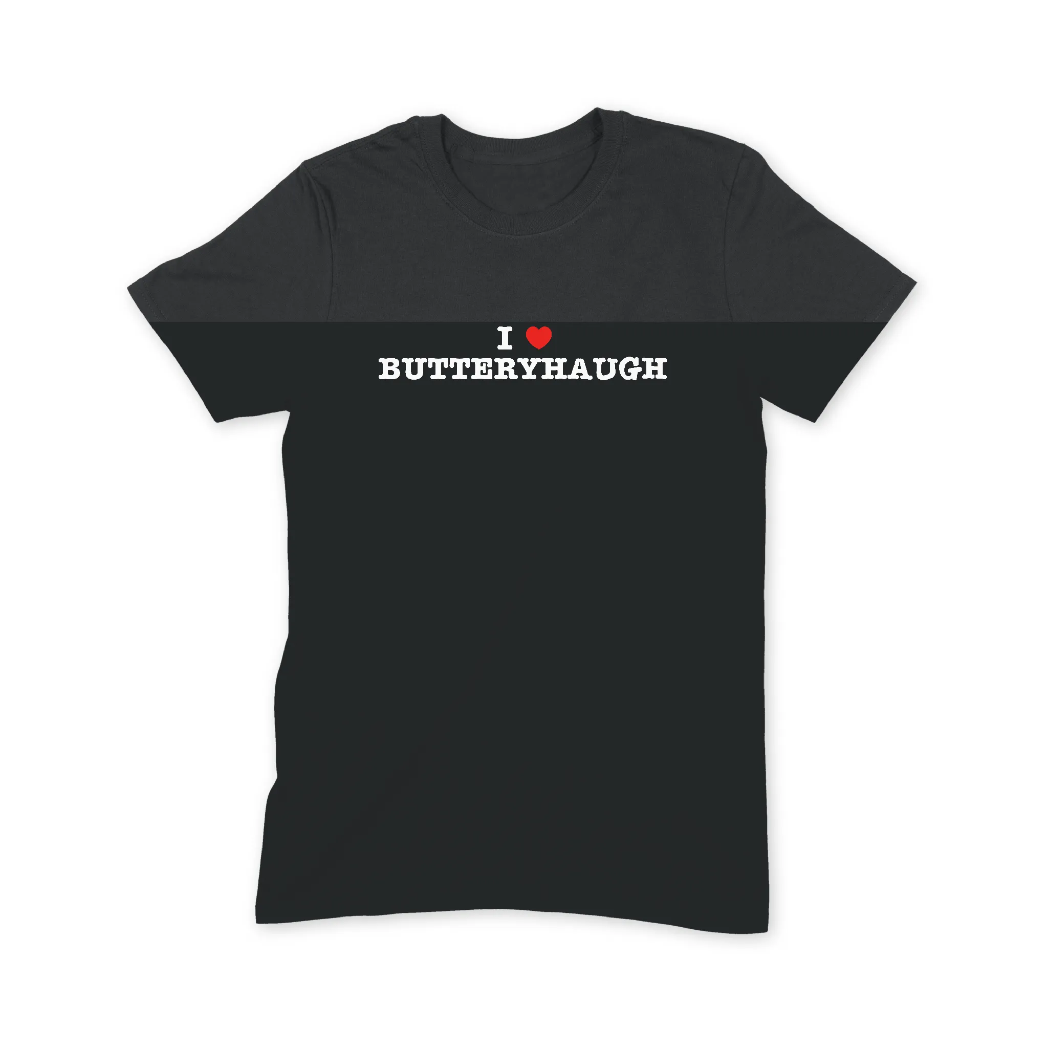 I Love Butteryhaugh T Shirt featuring the iconic I heart NY style design - but for those who ❤️ Butteryhaugh.