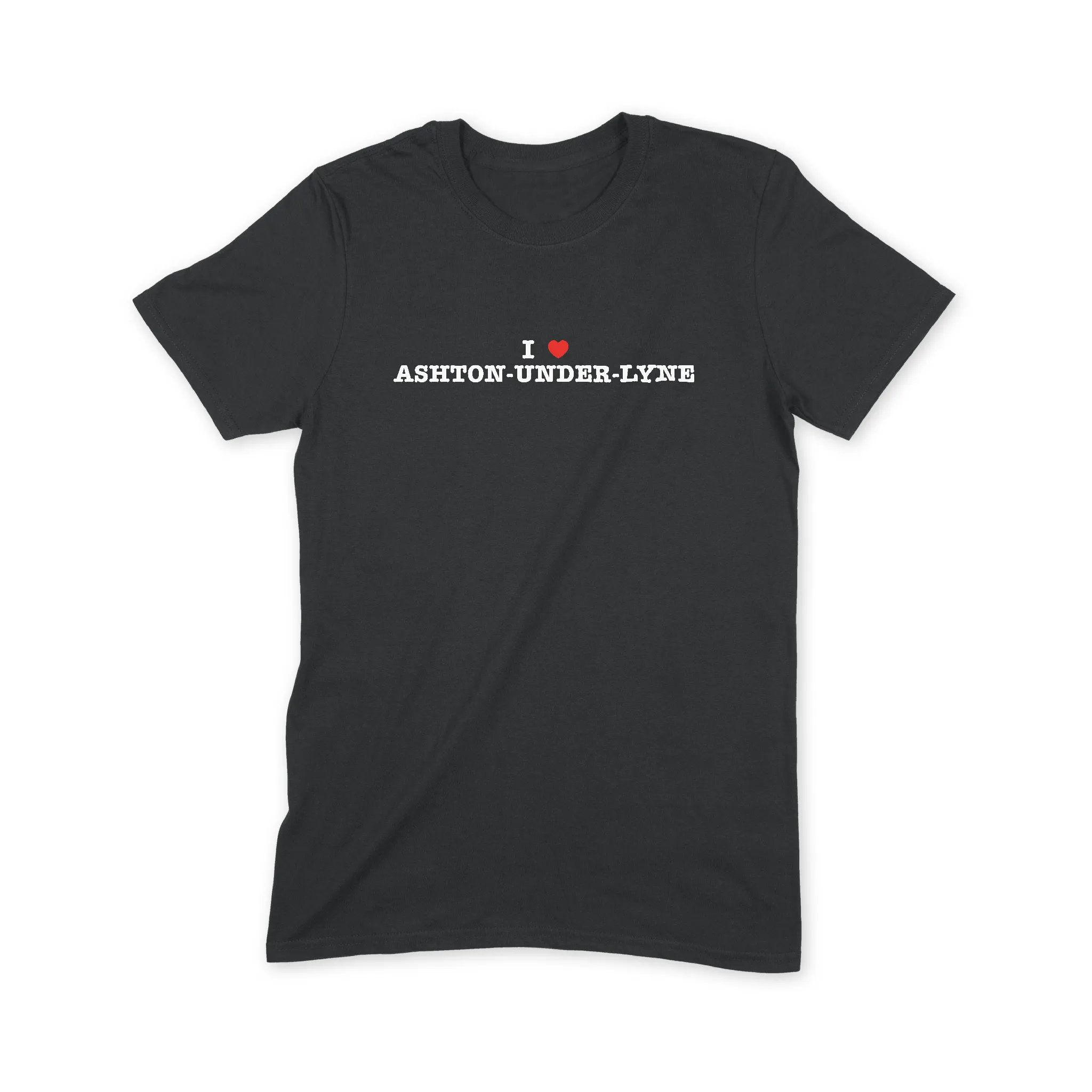 I Love Ashton-under-Lyne T Shirt featuring the iconic I heart NY style design - but for those who ❤️ Ashton-under-Lyne.