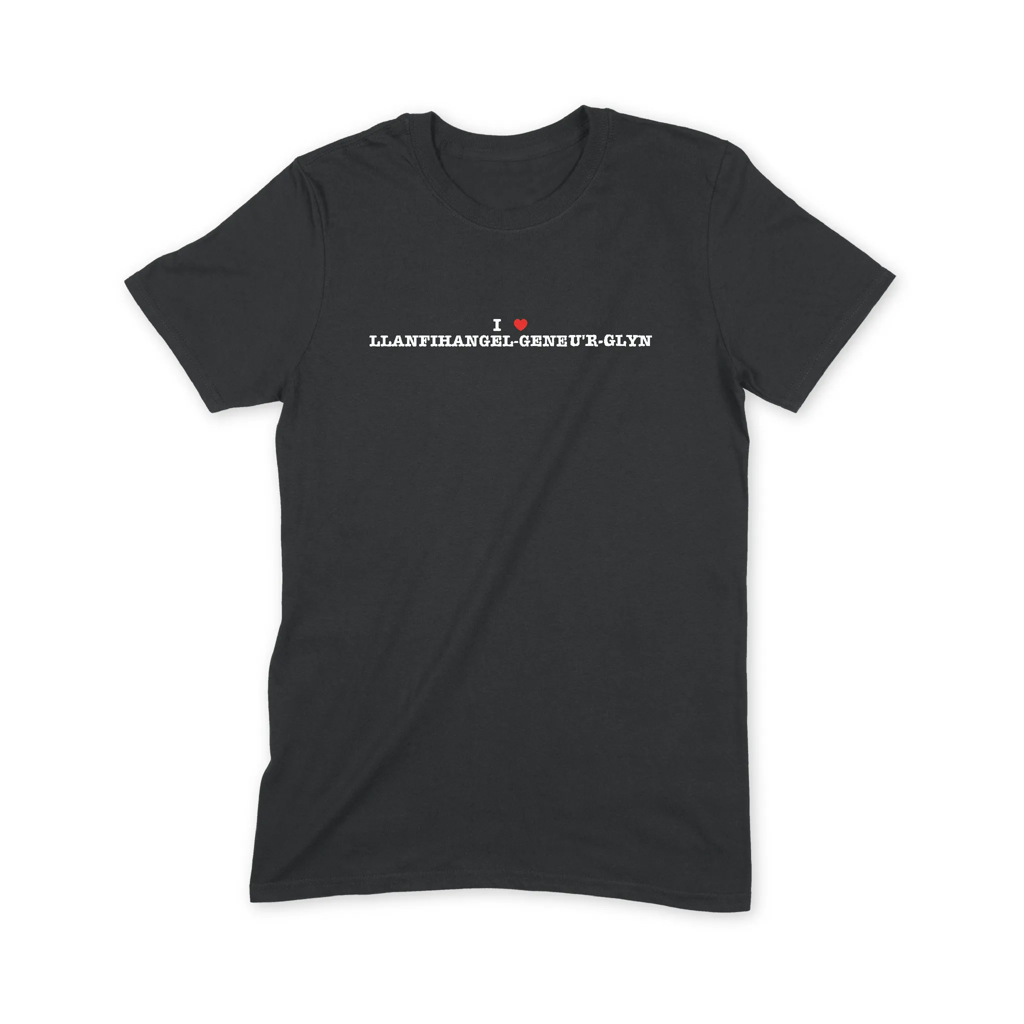 I Love Llanfihangel-geneu'r-glyn T Shirt featuring the iconic I heart NY style design - but for those who ❤️ Llanfihangel-geneu'r-glyn.