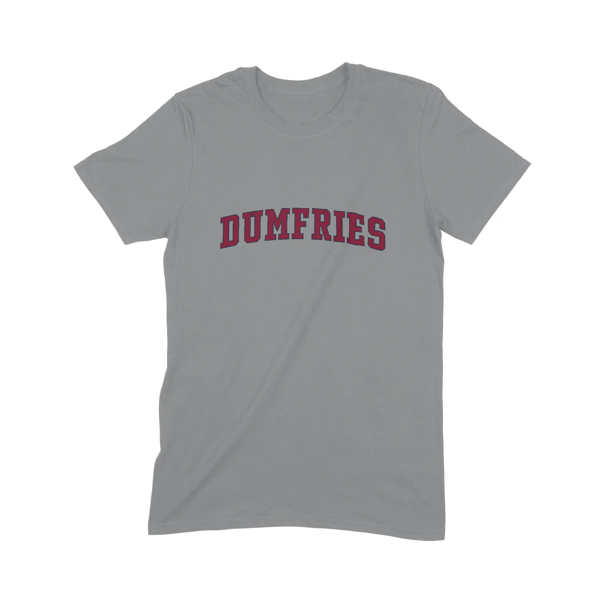- Vintage Aesthetic: Arched Dumfries text design for the college tee look.