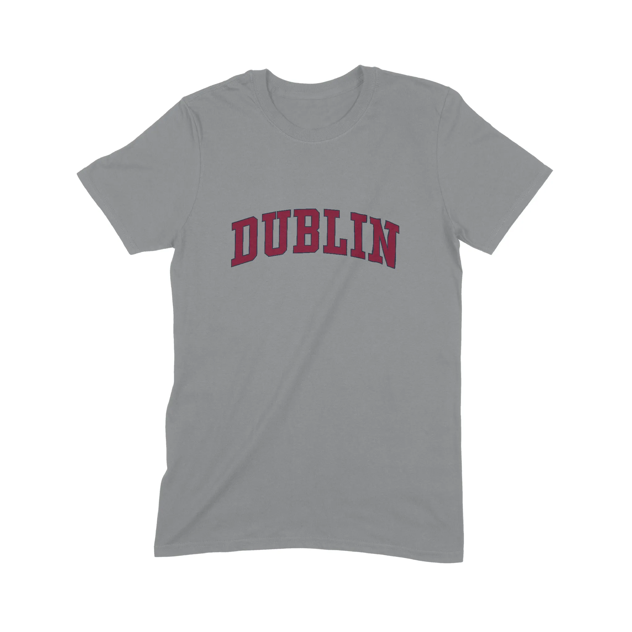 - Vintage Aesthetic: Arched Dublin text design for the college tee look.