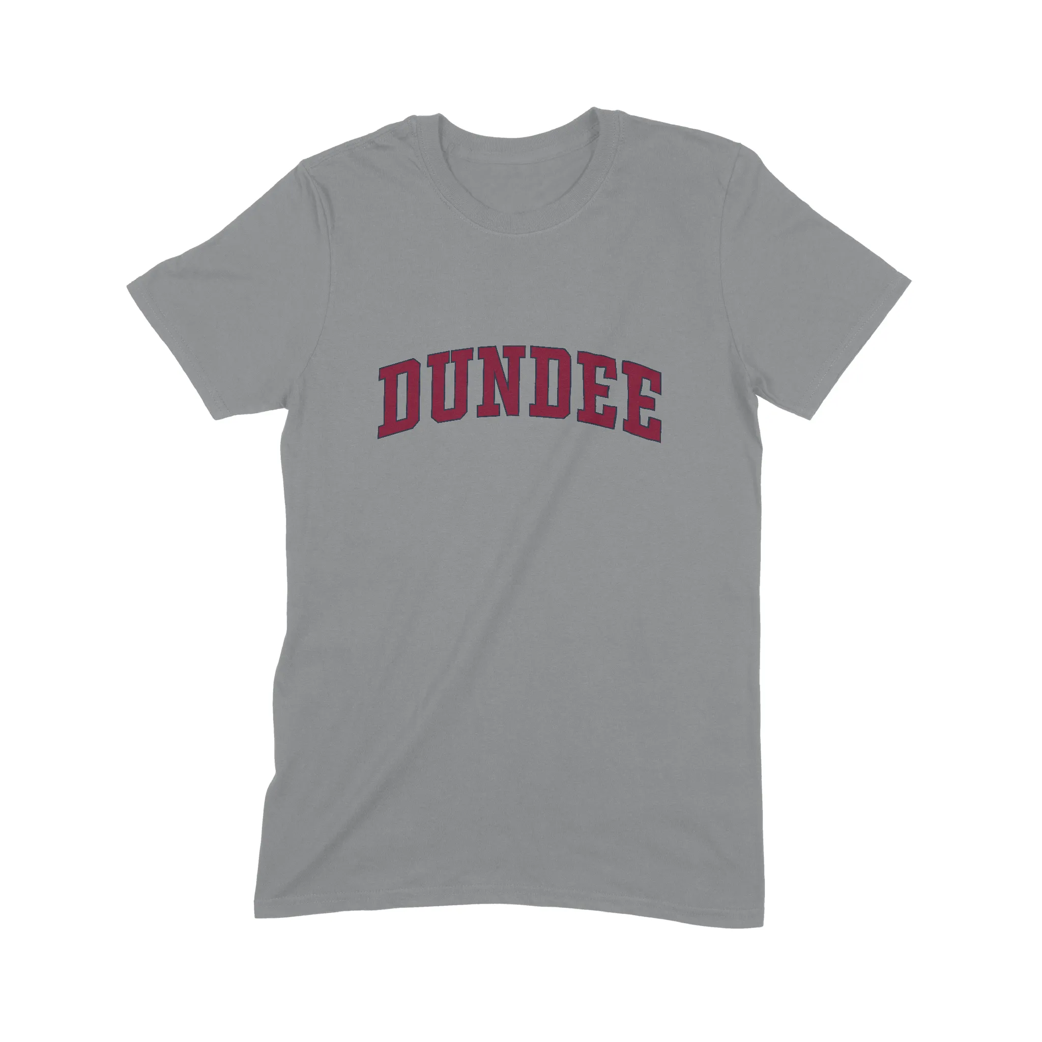 - Vintage Aesthetic: Arched Dundee text design for the college tee look.