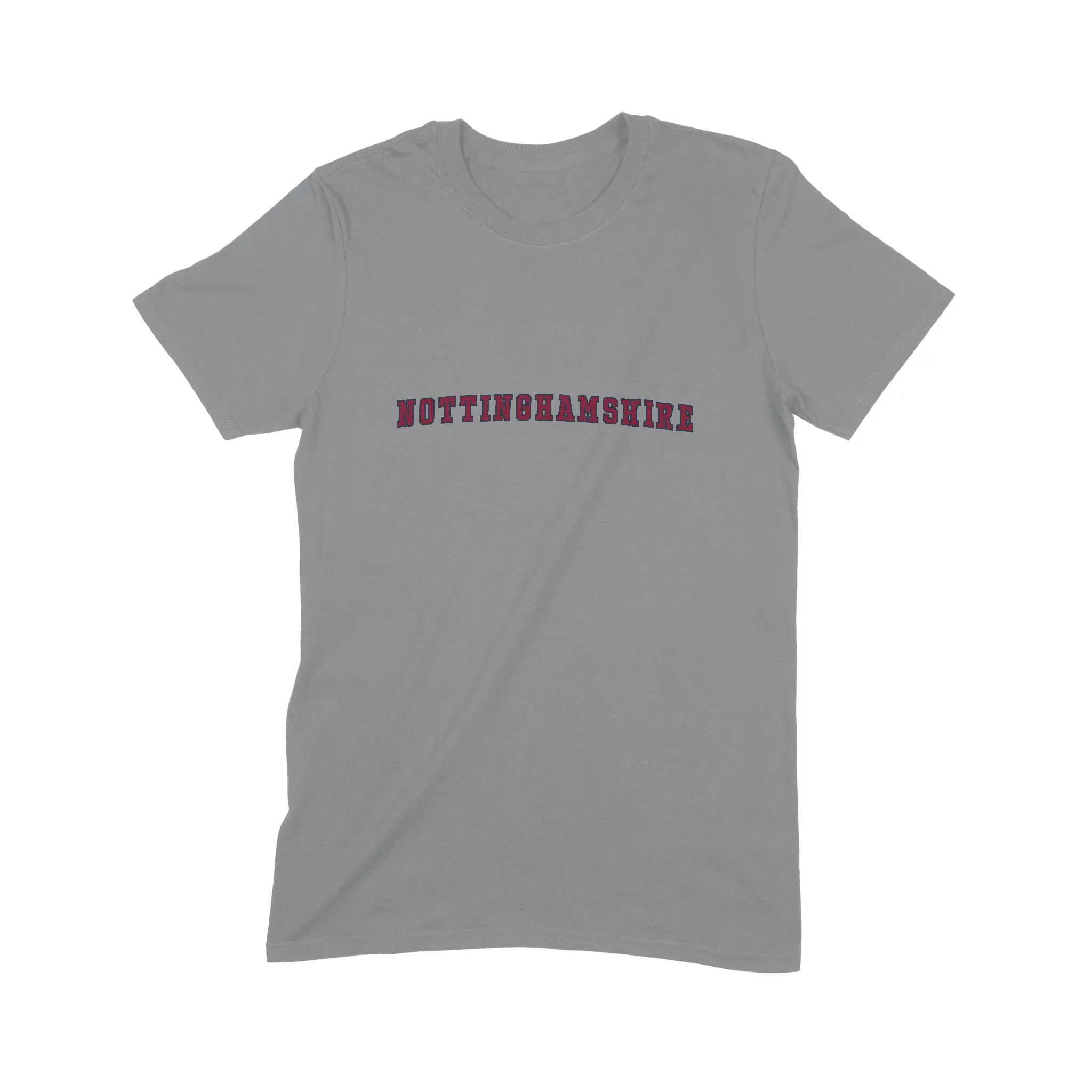 - Vintage Aesthetic: Arched Nottinghamshire text design for the college tee look.