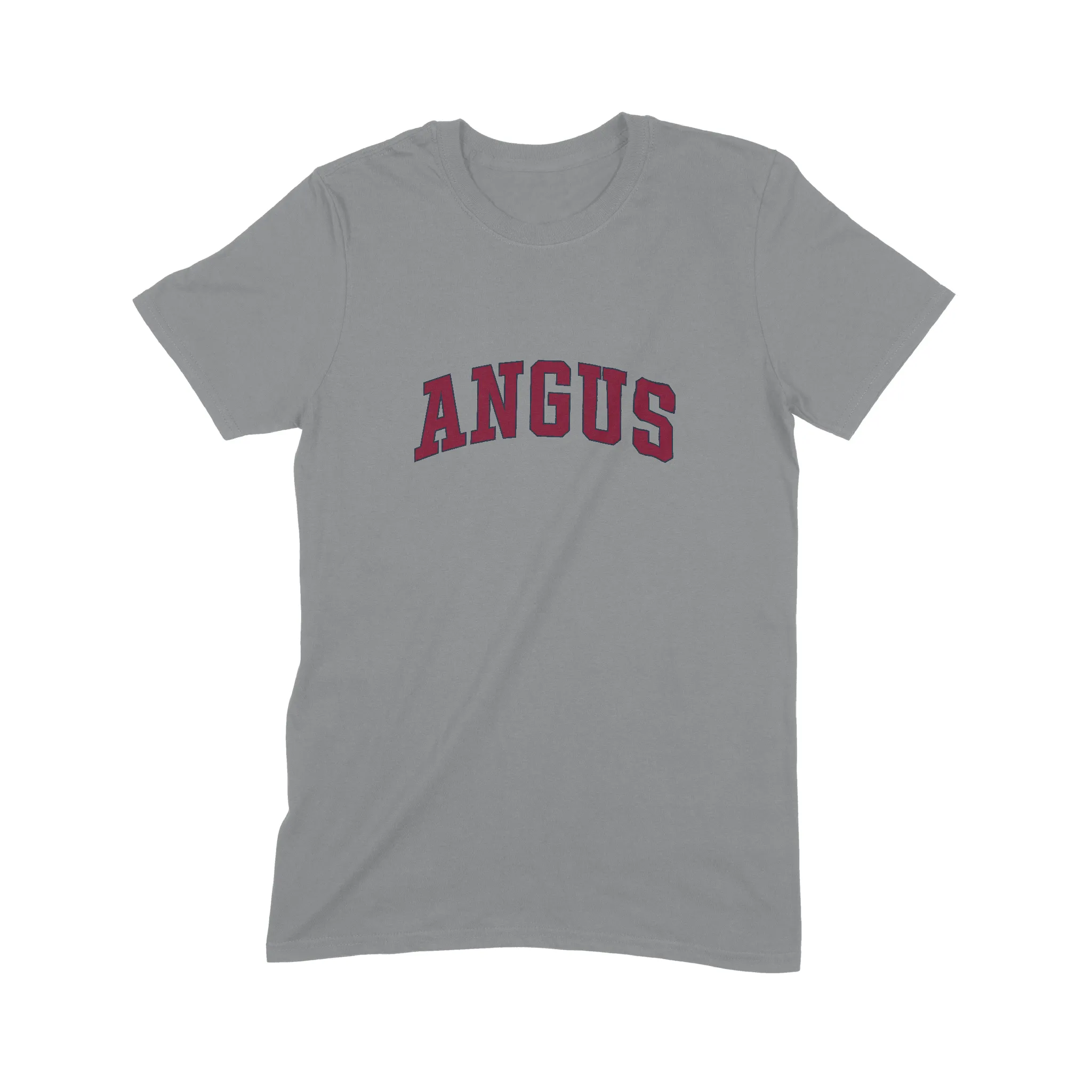 - Vintage Aesthetic: Arched Angus text design for the college tee look.